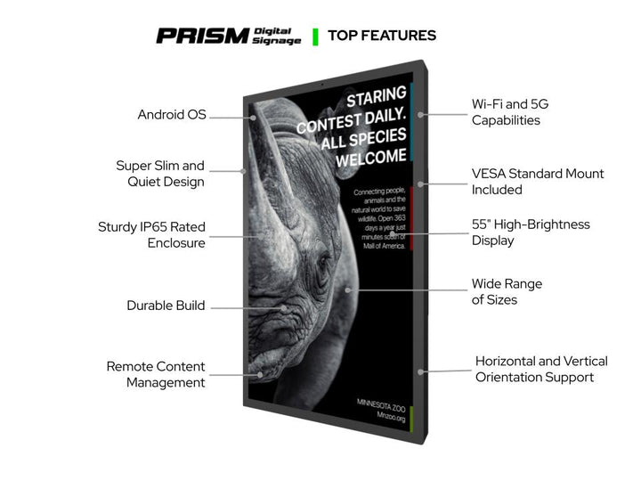 The 55” Wallmount Slim Outdoor Digital Signage is built with durability in mind. Its IP65-rated enclosure offers robust protection against weather elements like rain, dust, and temperature extremes, minimizing the need for frequent maintenance. The high-quality materials and construction ensure long-term performance with reduced upkeep costs, even in demanding outdoor settings.